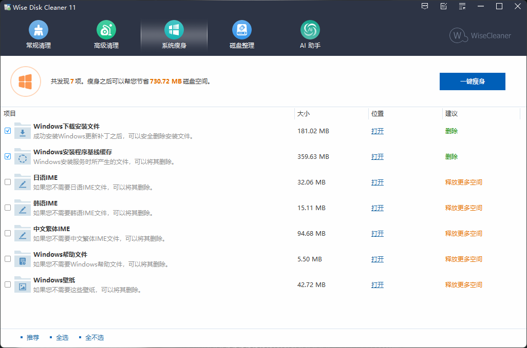 超级好用的C盘清理工具 WDCFree V11.1.2,清理能力远超360,本人首次使用就清理掉20GB垃圾! 栏目:软件区 作者:喵喵 时间:2026-01-15 15:58:52   **简介:** 如果你的电脑还用360去清理C盘的话,可以去卸载掉了,360不但清理不干净,反而给你电脑增加广告和垃圾。 这款软件可以深度清理C盘垃圾,清理的效率远远超过360,**我第一次用的时候,C盘就清理掉 20GB 的垃圾**,**而且可以设置计划任务,比如规定软件每隔多少天清理一次,它会按照设定自动执行清理任务**。具体的操作步骤很简单,只要你会用电脑,就会操作,这里就不多说了。 > [!success] **资源链接** > https://pan.quark.cn/s/dfd1bee5a226 版权声明:本站不存储任何实质资源,该帖为发布的网盘链接介绍帖。如您认为本站任何介绍帖侵犯了您的合法版权,请联系站长 ( 微信:wxid_ndplw29exf6921 ) 进行投诉,我们将在确认本文链接指向的资源存在侵权后,立即删除相关介绍帖子!