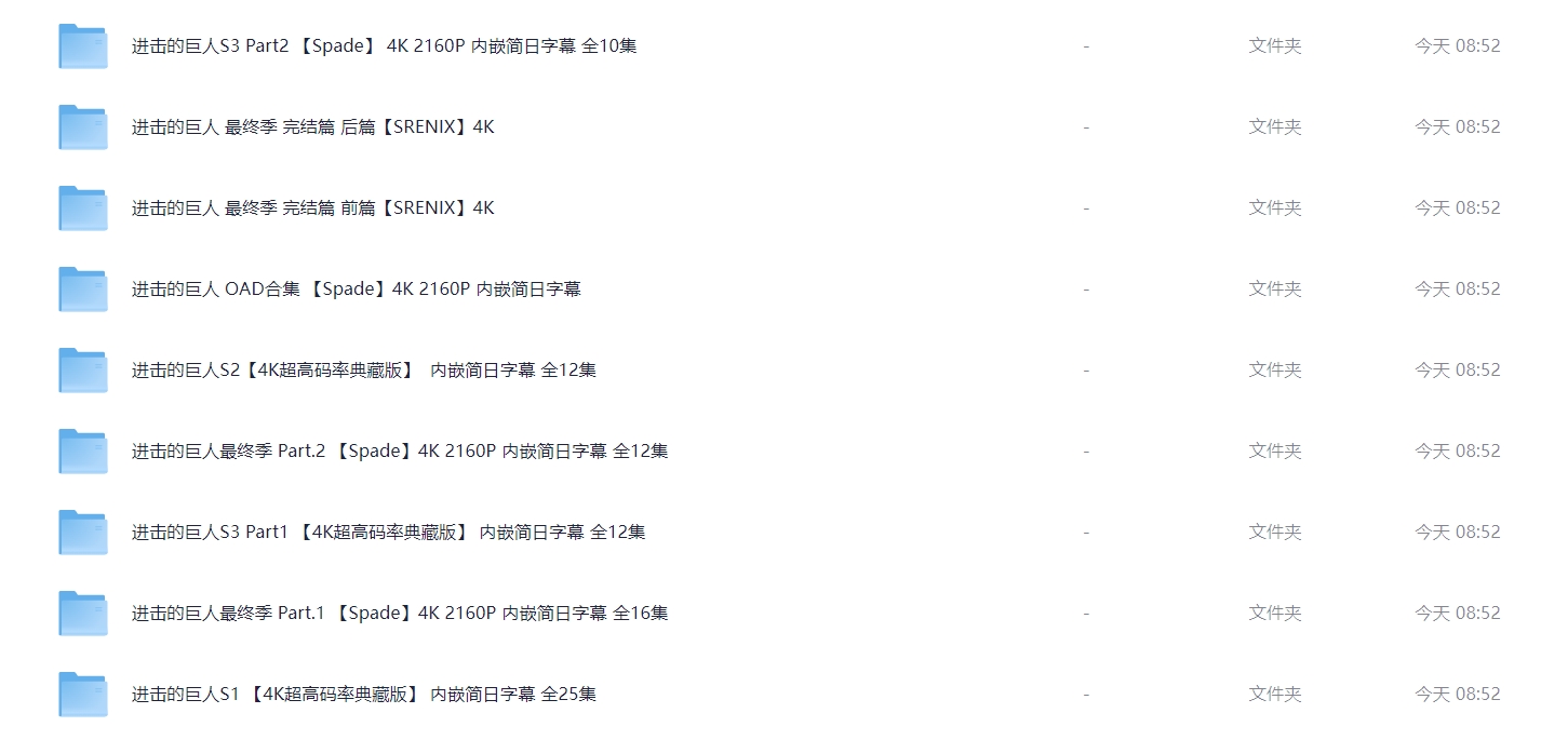 《进击的巨人》全系列完结【顶级4K典藏版】 4K超高码率 单集8G 附OVA合集 【内嵌简日双语特效字幕】 814G 栏目:动漫区 作者:喵喵 时间:2025-01-03 08:56:26    **简介:** 《进击的巨人》(日语:進撃の巨人)是一部日本的黑暗奇幻动画连续剧,改编自漫画家谏山创的同名漫画。 故事发生在虚构世界,人们生活在由三道层层包围的巨大围墙所构成的世界中,围墙外面有着无数以人类为食的巨人。故事围绕着主人公艾伦·耶格尔和他的朋友三笠·阿克曼以及阿尔敏·阿诺德的经历展开。三人原本平静的生活因某日巨人破墙而入而随之改变,之后经历苦难的他们加入了专门对付墙外巨人的调查兵团。艾伦和他的朋友们发誓要将这世界上的巨人赶尽杀绝,并在之后的历练中成长为与巨人作战的精锐士兵。然而随着艾伦被发现也是巨人之一后,这个世界背后的真相被一点点揭开。故事的主题也由最初的热血复仇逐渐变成对世间的人性和正义的复杂解读。 本作在剧情、作画与配乐各方面出色的表现,使其在日本国内与海外的众多影视评论网站上获得接近满分的评价,**被认为是近年日本动画的代表作之一**。 > [!success] **资源链接** > [https://pan.quark.cn/s/979f716b3125](https://pan.quark.cn/s/979f716b3125 "https://pan.quark.cn/s/979f716b3125") 版权声明:本站不存储任何实质资源,该帖为发布的网盘链接介绍帖。如您认为本站任何介绍帖侵犯了您的合法版权,请联系站长 ( 微信:wxid_ndplw29exf6921 ) 进行投诉,我们将在确认本文链接指向的资源存在侵权后,立即删除相关介绍帖子!